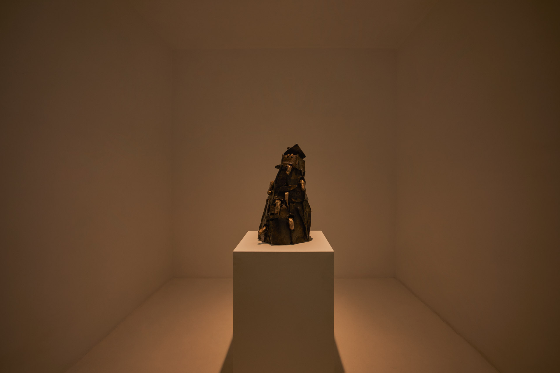 his sculptures, an outer surface and, conversely, cracks and joints that also suggest a dark and
