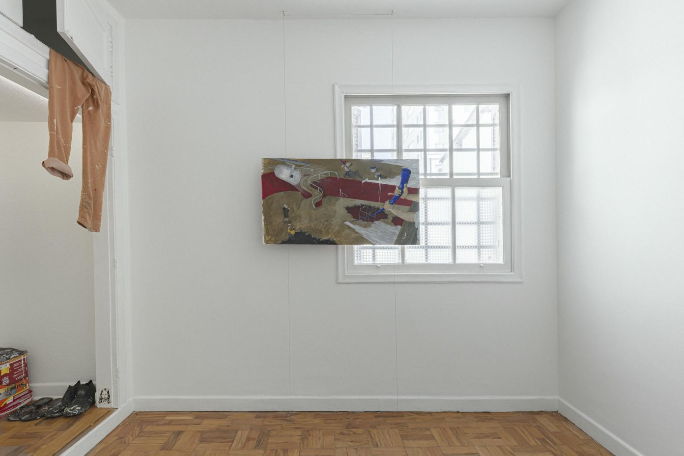 Acho que a força do trabalho de Oliveira vem de escolhas materiais despretensiosas (sobras de compensado de madeira e tinta de parede) e da intimidade do artista com seu assunto: pinturas sobre o ato de pintar como uma ocupação qualquer. O trabalho meticuloso e ao mesmo aparentemente casual de Matias Oliveira, é permeado por uma inquietude. É como se ele – ou seu personagem- estivessem sempre em busca de alguma coisa, mas o quê? Um significado para aquela situação? Algum tipo de respaldo? Isso permanece incógnito. A vida de qualquer pintor é, sem dúvida, turbulenta, marcada pela instabilidade e pela dúvida. Neste sentido, o trabalho de Matias Oliveira nos lembra que a batalha diária de todos nós não é tão diferente da batalha de um artista com uma tela em branco ou a busca do trabalhador autônomo pelo próximo cheque.
