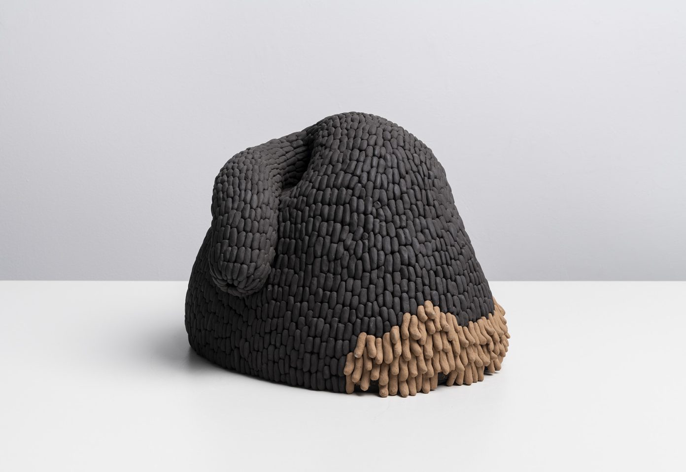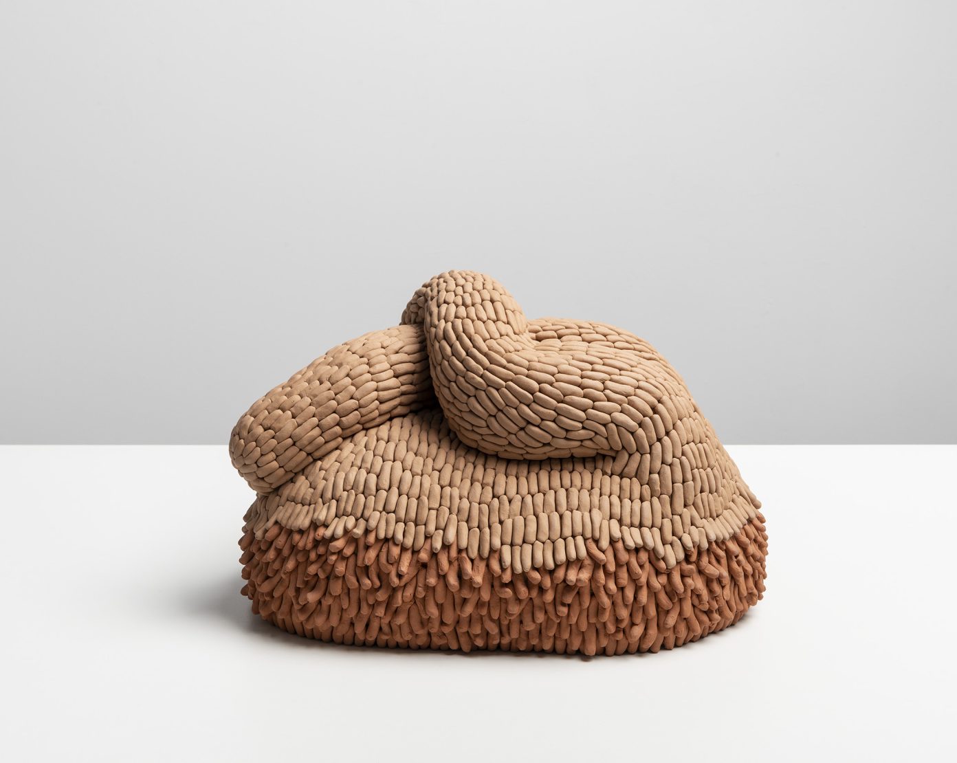 normally isolated in their individuality, seek fusion with the other. The fired ceramic, intentionally left