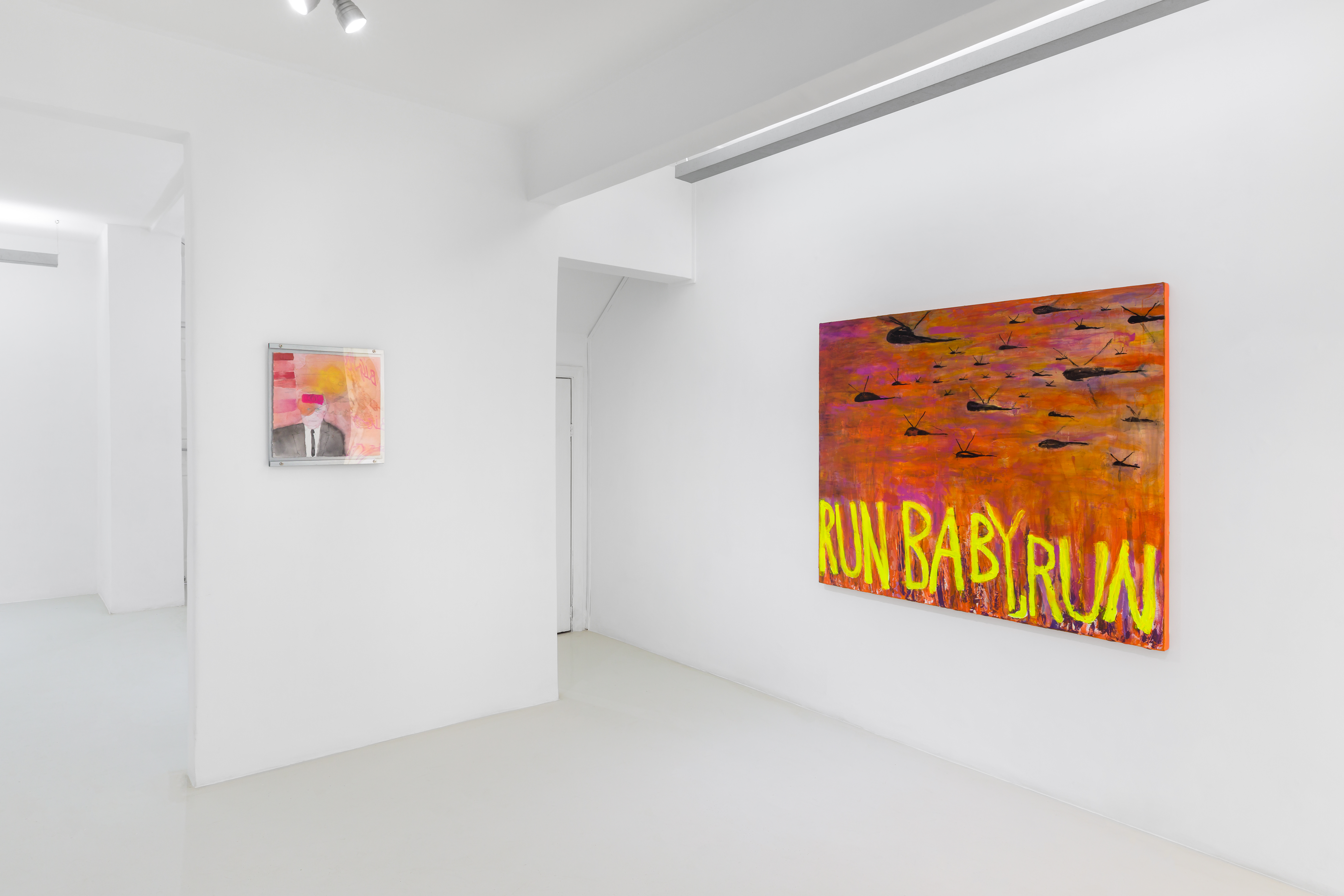 Such a strategy sounds like a metaphor for the countless practices and negotiations that take place in the socio-political sphere, when part of society struggles to question and appease forms of domination ingrained in our culture. The clash between form and representation, visible in these stagnant canvases, mirrors the increasingly perverse class struggle in a world corroded by the vacuum of ideologies and the dictates of capitalism.