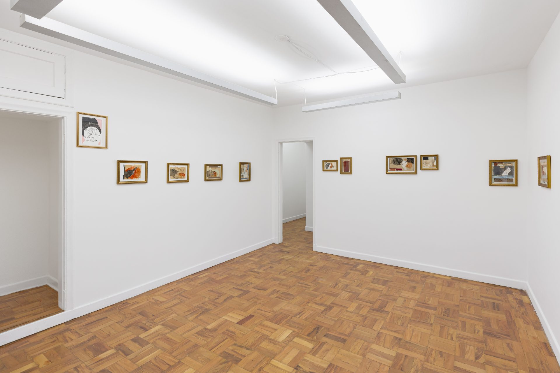 Uma das regras que criou para si é a organização da produção por séries. Foi uma delas, a das “Mulheres Armadas”, que foi publicando no Instagram, que atraiu o marchand Ricardo Sardenberg à sua casa para ver seus trabalhos recentes, visita que acabou gerando a atual exposição. Ao invés das lutadoras, prontas para o combate, a escolha da dupla recaiu sobre outros dois núcleos de composições recentes, mais intimistas. O primeiro, “Mulheres Dopadas” (ou “Mulheres Burguesas”) trabalha com uma certa zona de instabilidade, de tensão em que se entrecruzam figuras animalescas, frases e palavras recortadas de livros com forte carga simbólica, como uma biografia de Bianca Sforza, da família nobre que governou Milão em pleno renascimento e para quem Da Vinci trabalhou; “A Peste”, de Albert Camus; ou a biografia de Leon Trotsky, com todas as suas referências políticas de revolução, exílio e outros termos engajados e carregados de radicalidade. “A política me interessa muito, faz parte de nós”, sublinha.
