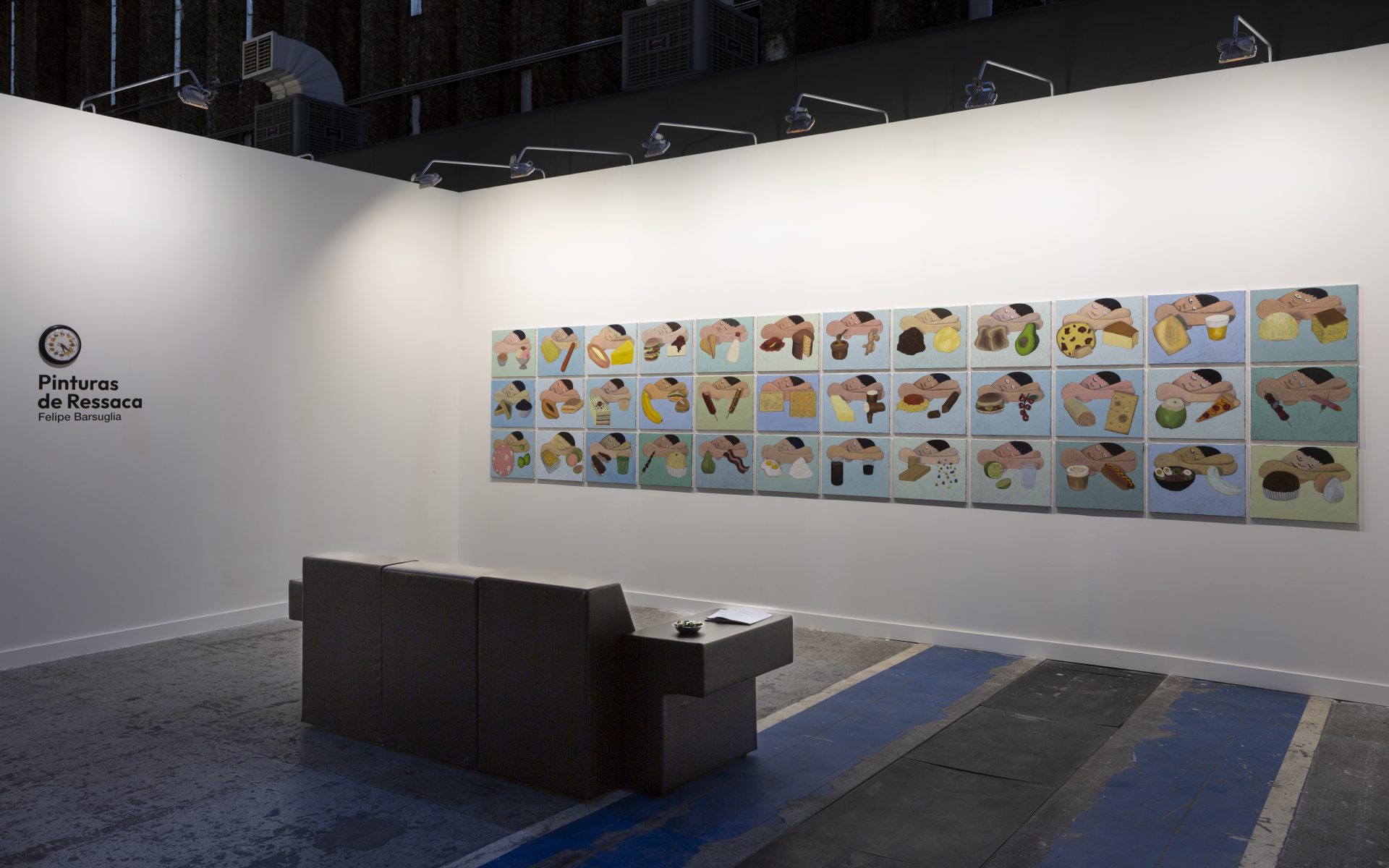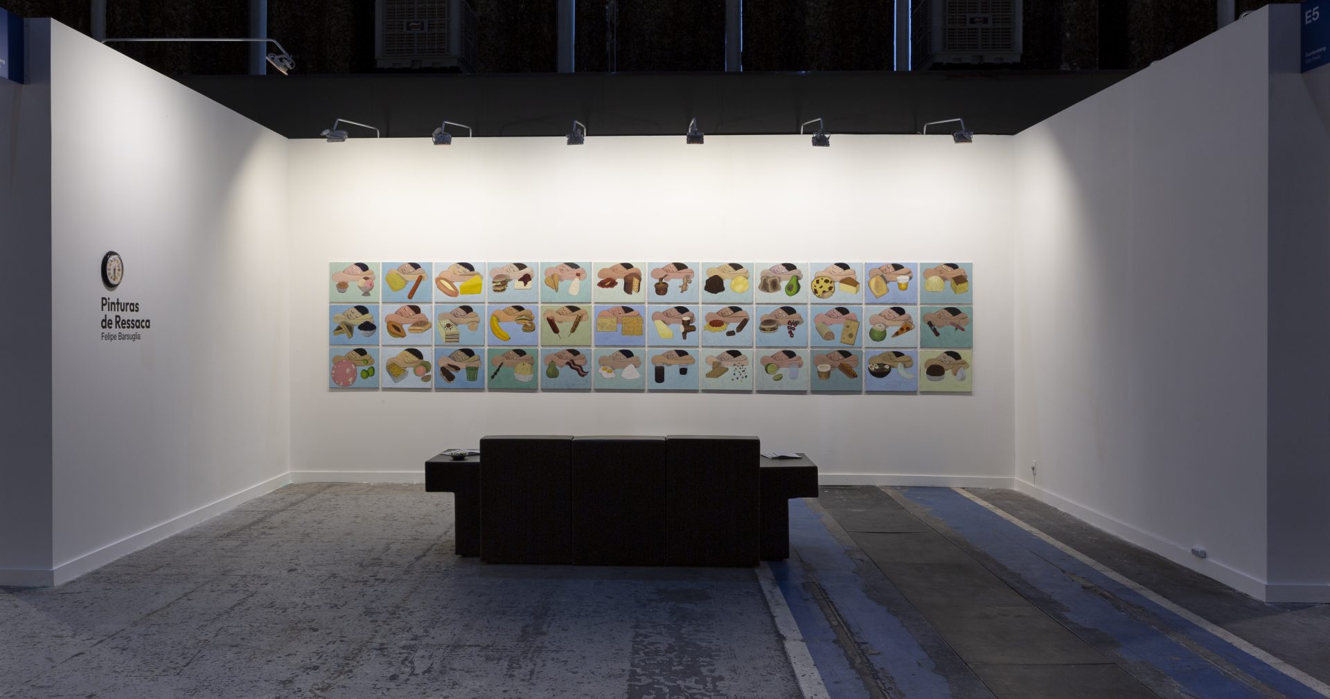In this series called Pinturas de Ressaca, Felipe, with a hangover, arrives at the studio and, with heightened sensitivity, arrives at the surprising obvious: he paints a composition that reflects the present. The intoxication of the previous day seeks solace in the illusory comfort of the following day. And so it goes.